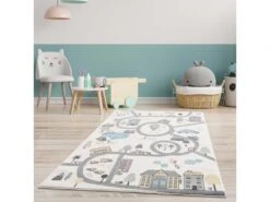 Tapis De Jeu Pour Chambre D’enfant Blanc Motif Route De L’Ă©cole 140x200cm