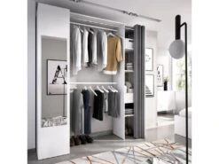 Armoire Sciliar, Structure Pour Dressing, Portemanteau Ouvert, 141x52h205 Cm, Blanc Et Anthracite