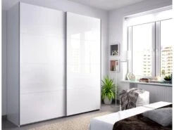 Armoire Nuptse, Porte-manteau Pour Chambre, Armoire Avec 2 Portes Coulissantes, 150x65h204 Cm, Blanc