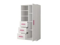 OLLIE – Armoire Chambre D’enfants – 3 Tiroirs + 5 étagères – 160x80x40 Cm – Poignées Colorées
