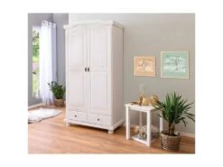 MARLIE – Armoire Chambre D’enfants -3 Tiroirs + 5 Ă©tagères – 160x80x40 Cm – PoignĂ©es ColorĂ©es