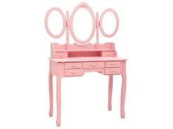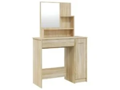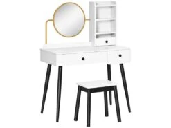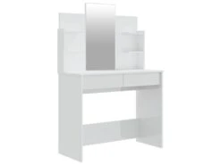 Coiffeuse Avec Miroir Tiroirs MDF Blanc 80x40x140 Cm ML-DESIGN