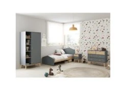 Commode Table De Chevet 3 Tiroirs Bois Gris Vintage 54x35x27