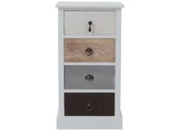 Meuble De Chevet Commode 4 Tiroirs Bois Blanc Rustique 69x37x27