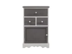Armoire Meuble De Rangement 3 Tiroirs Blanc Gris Bois 94x40x30