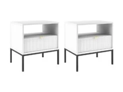 Lot De 2 Tables De Chevet Avec 2 Tiroirs – MDF Et MĂ©tal – Blanc LaquĂ© Et DorĂ© – KORASA