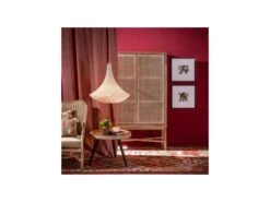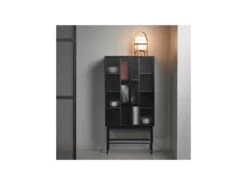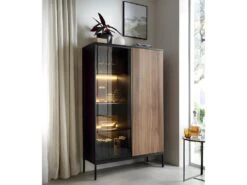 Vaisselier 2 Portes 4 Niches Blanc Mat DĂ©cor Bois PoignĂ©es Noir – LEANE