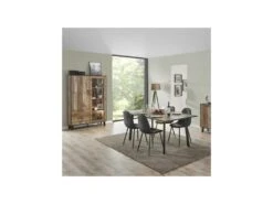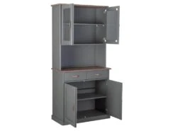 Vaisselier 2 Portes VitrĂ©es Bois Gris/BĂ©ton – RIUCKO – L 130 X L 52 X H 190 Cm