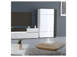 Vaisselier Design AOMORI 2 Tiroirs, 4 Portes, Coloris Blanc Et Gris Mat