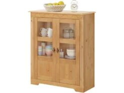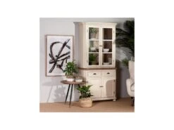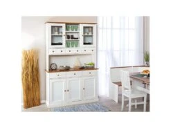 SOCOA – Buffet Vaisselier 4 Portes 2 Tiroirs Bois Massif Vernis Sepia Et Blanc