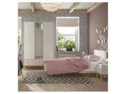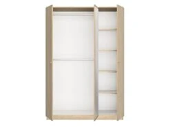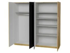Armoire 4 Portes Battantes Blanc Brillant/ChĂȘne Naturel – MARGUERITE – L 162 X L 52 X H 199 Cm