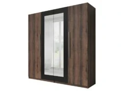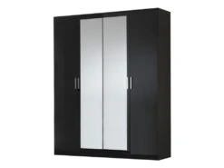 Armoire 4 Portes Battantes 2 Miroirs LaquĂ© Noir Brillant – AREZZO – L 182 X L 63 X H 210 Cm