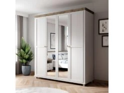 Armoire 4 Portes Battantes 2 Miroirs LaquĂ© Blanc Brillant – AREZZO – L 182 X L 63 X H 210 Cm