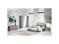 Armoire Chambre D’enfant Design Coloris Gris Et ChĂȘne Avec 2 Portes Battantes Collection BIBOU.