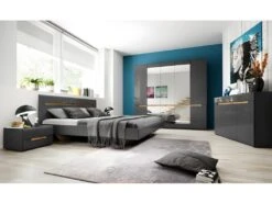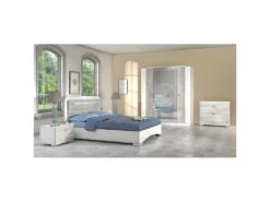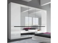 Armoire 4 Portes Battantes Blanc/Marbre Gris Brillant – MARGUERITE – L 162 X L 52 X H 199 Cm