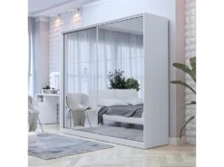 Armoire Collection BRESCIA, 2 Portes Coulissantes Coloris Noir Et Blanc, Penderie Intégrée.