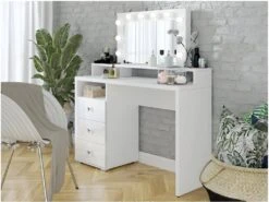Coiffeuse Design Avec éclairage Intégré Collection VERSAILLE Coloris Blanc Finitions Brillantes