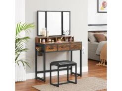 STELLY – Coiffeuse Style Rustique Chambre Ă Coucher – 90x40x141 Cm – 3 Tiroirs – Avec Tabouret