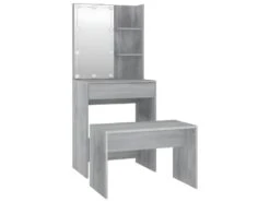 Ensemble De Coiffeuse Tabouret Avec Led 60 X 40 X 140 Cm Bois D’ingĂ©nierie Gris 02_0006289