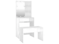 Ensemble De Coiffeuse Design Avec Led 60 X 40 X 140 Cm Bois D’ingĂ©nierie Blanc Brillant 02_0006308