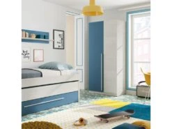 MARLIE – Armoire Chambre D’enfants -3 Tiroirs + 5 Ă©tagĂšres – 160x80x40 Cm – PoignĂ©es ColorĂ©es