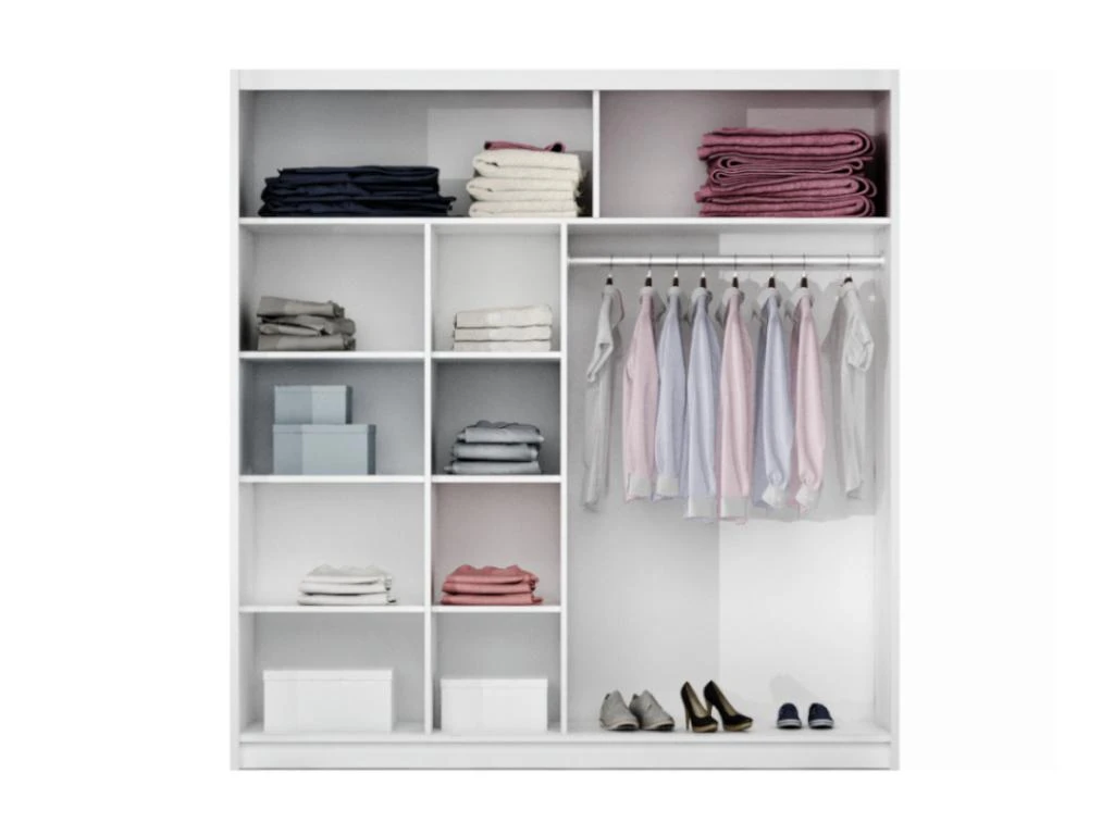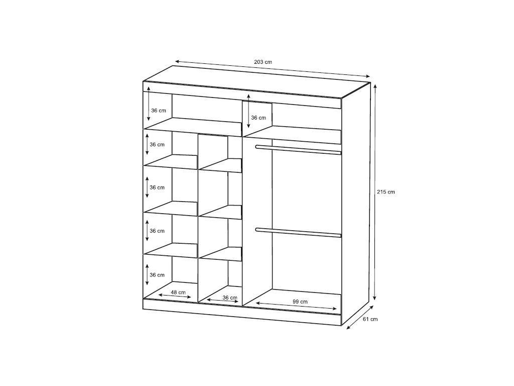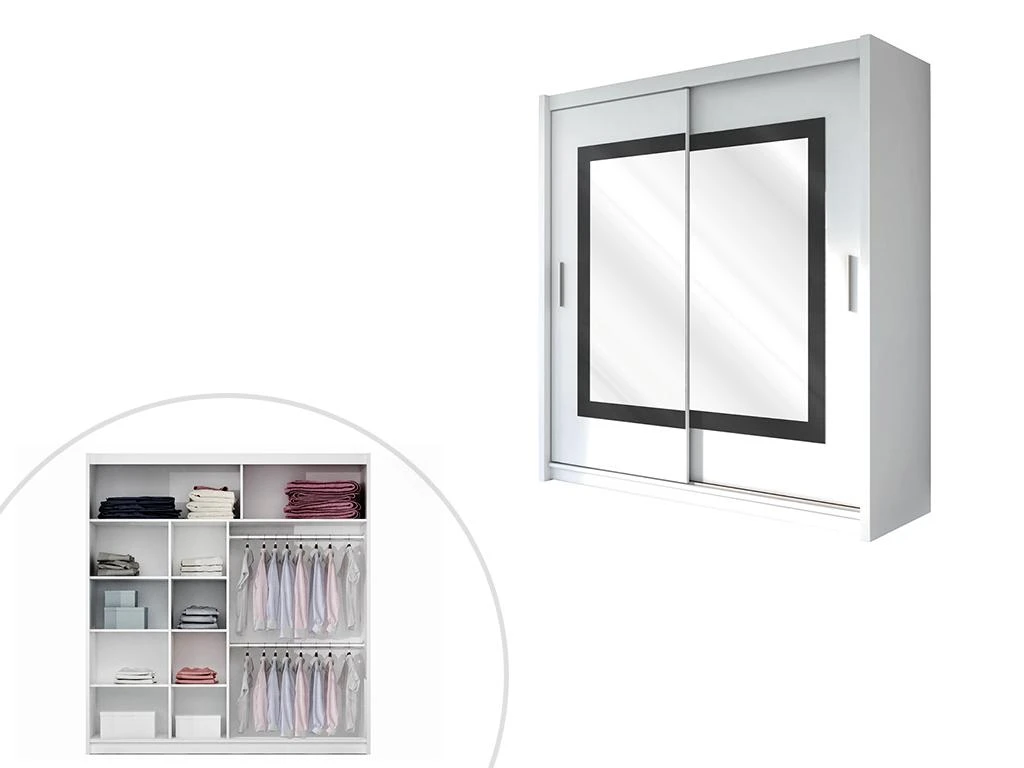 L’armoire AUTLAN vous offre un bel espace de rangements grĂące Ă sa grande penderie et ses nombreuses lingĂšres. EquipĂ©e de deux grands miroirs sur les portes coulissantes, vous pourrez facilement vous admirer de haut en bas dans vos plus belles tenues !