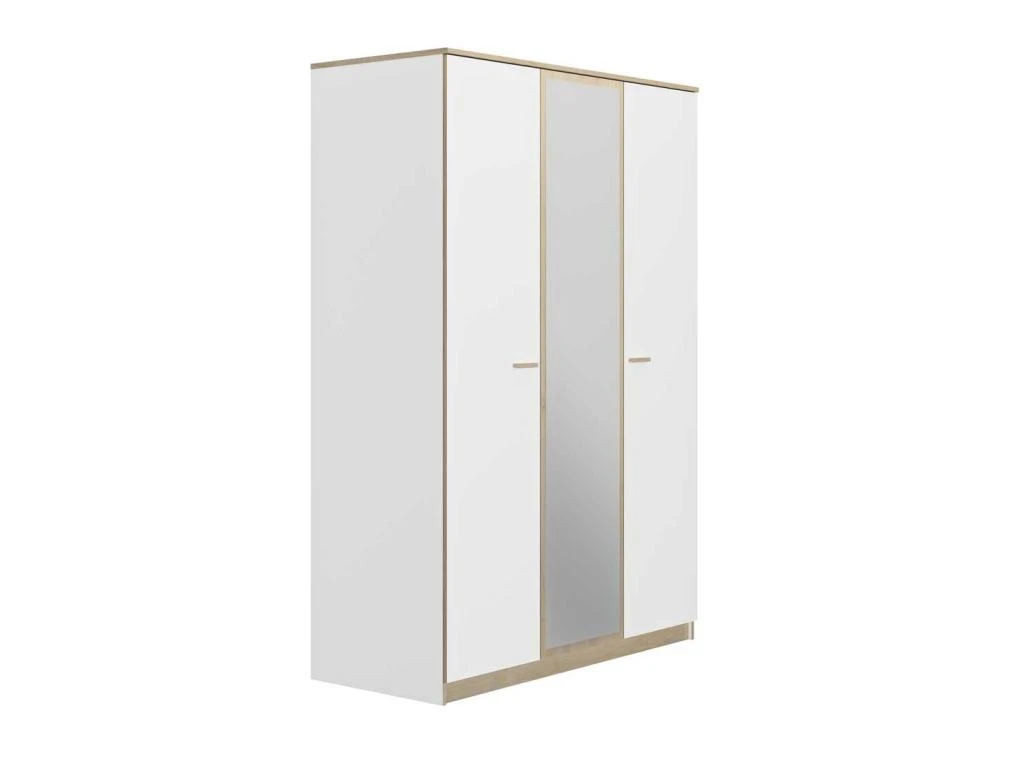 Pour un apport de luminositĂ© dans votre chambre Ă coucher la porte centrale de cette armoire Ă la dimension optimisĂ©e est habillĂ©e d’un miroir, elle complĂšte ainsi la clartĂ© de la finition laque blanche que des champs finition ChĂȘne Blond mettent en relief.
