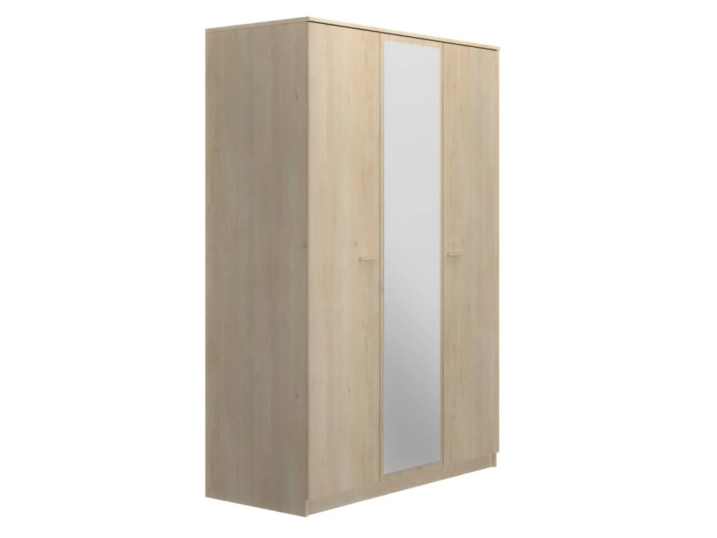 Pour un apport de luminositĂ© dans votre chambre Ă coucher la porte centrale de cette armoire Ă la dimension optimisĂ©e est habillĂ©e d’un miroir, elle complĂšte ainsi la clartĂ© de la finition ChĂȘne Blond.