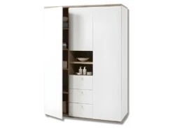 Armoire comprenant 3 portes, 3 tiroirs et 3 niches, bicolore et bi-matiĂšre, pour une ambiance moderne et nature.