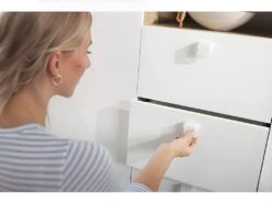On aime ses deux niches couleur chĂȘne clair qui viennent apporter de la couleur Ă l’armoire.
