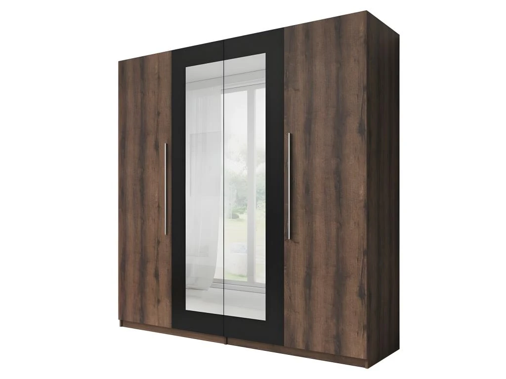Cette garde robe sublimera votre chambre avec son coloris chêne foncé et noir. Composée de 4 portes dont 2 avec miroir. Les 2 grands miroirs intégrés seront parfaits pour vos séances d’essayage et apporteront clarté et luminosité à votre chambre. L’intérieur est muni de nombreux espaces de rangements : 1 grande penderie et 6 étagères afin d’en faire un dressing qui accueillera aisément toute votre garde-robe.
