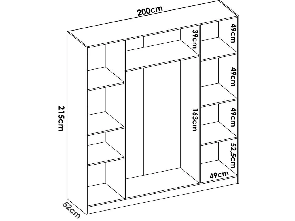 DIMENSIONS EN CM – Armoire : Longueur : 200, Largeur : 52, Hauteur : 215
