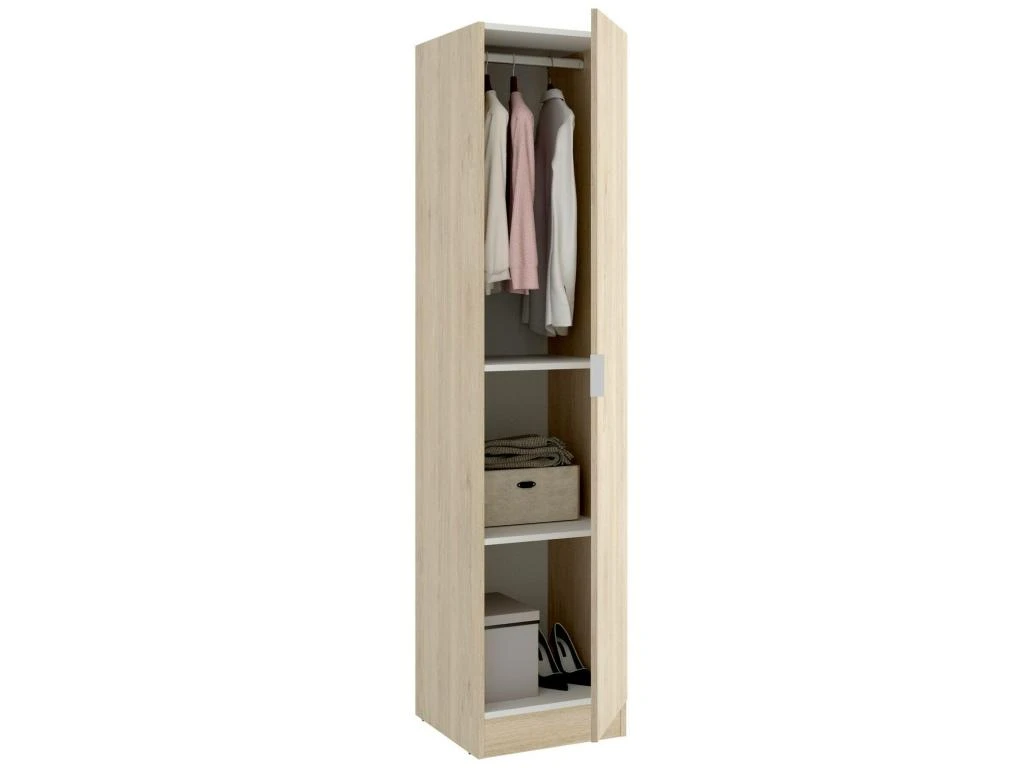 STRUCTURE ET UTILISATION – Armoire avec une porte battante, trois Ă©tagĂšres internes et une tringle Ă vĂȘtements, grĂące Ă l’organisation interne de ses espaces, elle offre un grand espace de rangement – Toute la structure du meuble est parfaite pour meubler une chambre dans un espace- lit double, une chambre d’enfant ou une chambre d’amis – Les Ă©tagĂšres intĂ©rieures combinĂ©es Ă la tringle Ă vĂȘtements vous permettront de ranger vos vĂȘtements et vĂȘtements de maniĂšre ordonnĂ©e.