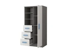 CaractĂ©ristiques: 2 portes – CĂŽtĂ© gauche : 4 Ă©tagĂšres – Au centre : 2 penderies – CĂŽtĂ© droit : 4 Ă©tagĂšres – Portes Ă©quipĂ©es du systĂšme de fermeture silencieuse