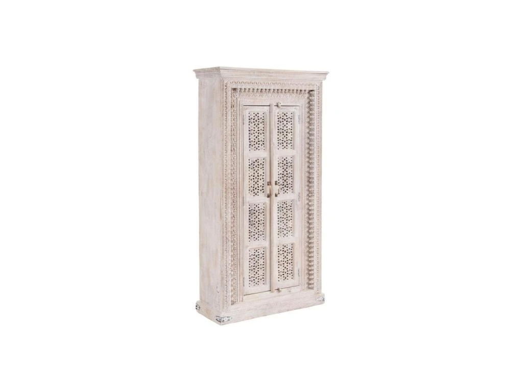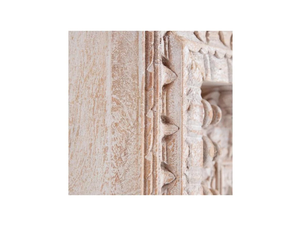 Mettant en oeuvre du bois de Manguier blanchi et sublimée par des sculptures faites à la main, ce très beau meuble de rangement très nettement inspiré des meubles du bout du monde saura apporter de la chaleur dans une chambre ou même moderniser un coin repas classique.
