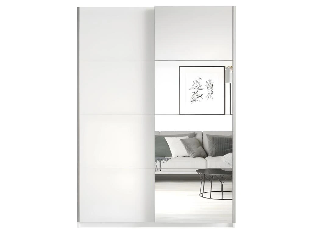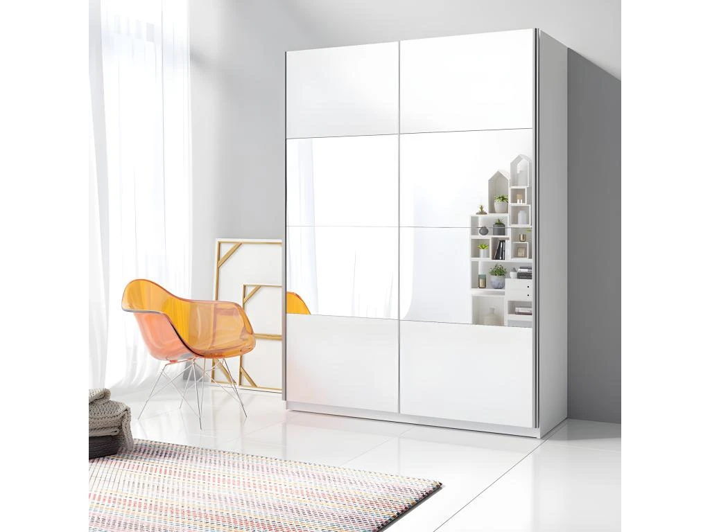 Cette garde robe sublimera votre chambre avec son coloris blanc mat. ComposĂ©e de 2 portes coulissantes. les miroirs seront parfait pour vos sĂ©ances d’essayage et apporteront clartĂ© et luminositĂ© Ă votre chambre. L’intĂ©rieur est muni de nombreux espaces de rangements : une grandes penderies et 5 Ă©tagĂšres afin d’en faire un dressing qui accueillera aisĂ©ment toute votre garde-robe.