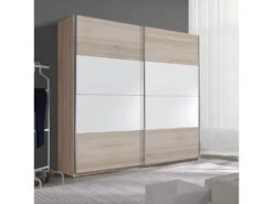 Cette garde robe sublimera votre chambre avec son coloris chĂȘne clair et blanc. ComposĂ©e de 2 portes avec un miroir. central. Ce grand miroir sera parfait pour vos sĂ©ances d’essayage et apporteront clartĂ© et luminositĂ© Ă votre chambre. L’intĂ©rieur est muni de nombreux espaces de rangements : une grandes penderies et 5 Ă©tagĂšres afin d’en faire un dressing qui accueillera aisĂ©ment toute votre garde-robe.