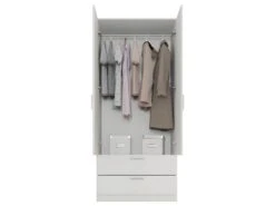 Armoire Dressing BRIXTON 2 Portes 1 Penderie + 2 Tiroirs Blanc