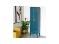 La teinte bleue se marie à la quincaillerie dorée, parfaitement raccord avec le style oriental de ce meuble multifonction sobre et élégant.