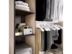 STRUCTURE ET UTILISATION – Armoire avec rideau avec quatre Ă©tagĂšres de chaque cĂŽtĂ© et deux tringles Ă vĂȘtements – GrĂące Ă l’organisation de ses espaces, elle offre un grand espace de rangement – Toute la structure du meuble est parfaite pour meubler une chambre double dans un maniĂšre peu encombrante, une chambre d’enfant ou une chambre d’amis – Les Ă©tagĂšres combinĂ©es Ă la tringle Ă vĂȘtements vous permettront de ranger vos vĂȘtements et costumes de maniĂšre ordonnĂ©e.