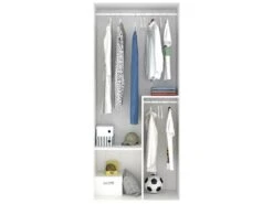 STRUCTURE ET UTILISATION – Armoire complĂšte avec trois portes battantes avec une barre de cintre et trois compartiments internes – GrĂące Ă l’organisation interne de ses espaces, elle offre un grand espace de rangement – Toute la structure du meuble est parfaite pour meubler une chambre Ă une chambre peu encombrante, une chambre d’enfants ou une chambre d’amis – Les compartiments internes combinĂ©s Ă la barre de cintre vous permettront de ranger les vĂȘtements et les vĂȘtements de maniĂšre ordonnĂ©e.
