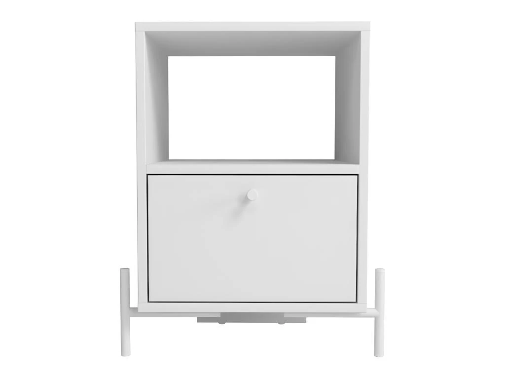 Chevet – Meuble d’entrĂ©e 1 Tiroir 1 Niche Blanc Pieds MĂ©tal PEN