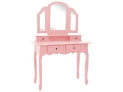Ensemble De Coiffeuse Et Tabouret 100 X 40 X 146 Cm Rose 02_0006377
