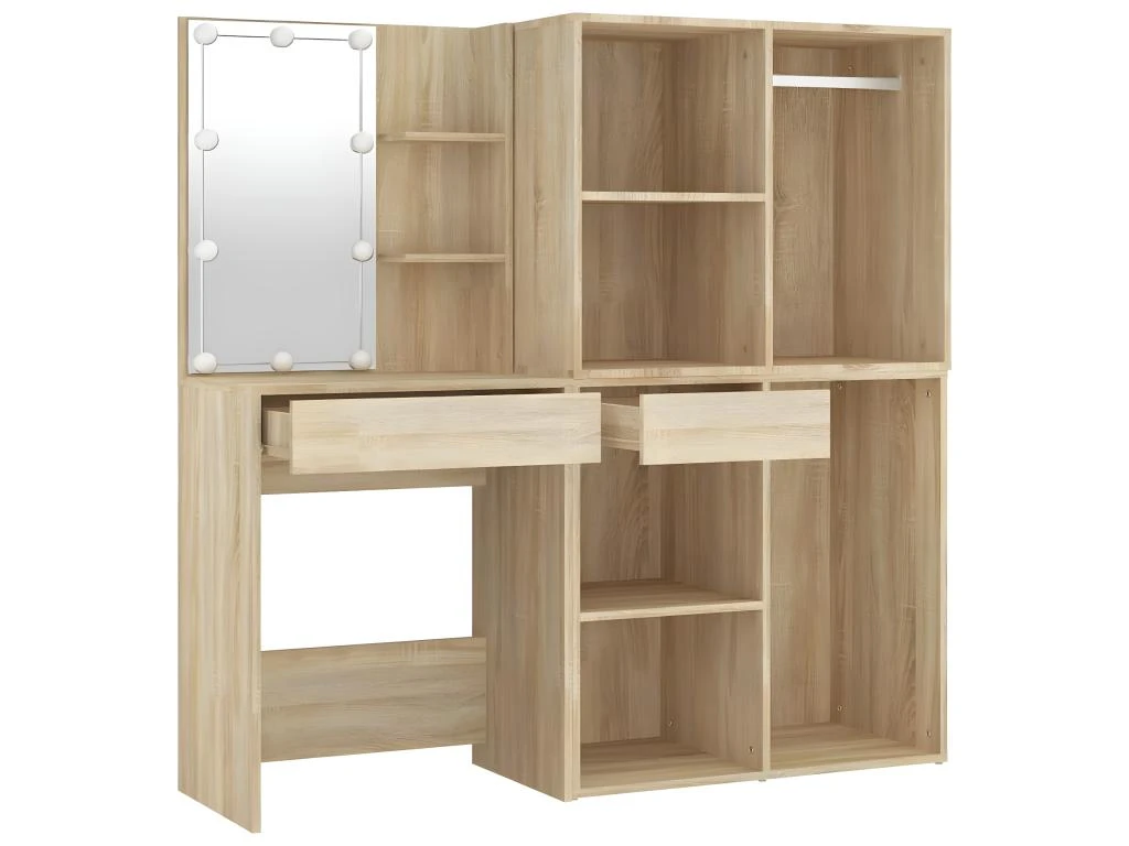 Matériau durable : la coiffeuse à LED avec armoires est fabriquée en bois d’ingénierie.