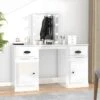 La coiffeuse est en aggloméré avec des bords en PVC et est stable et durable.