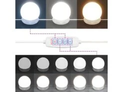 - LumiĂšre LED : la table de maquillage dispose d’ampoules LED avec USB, qui sont faciles Ă changer de mode du blanc chaud au blanc froid. Les ampoules LED autour du miroir illuminent Ă©galement votre beautĂ©.