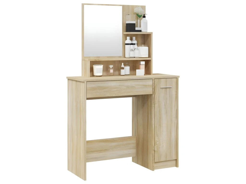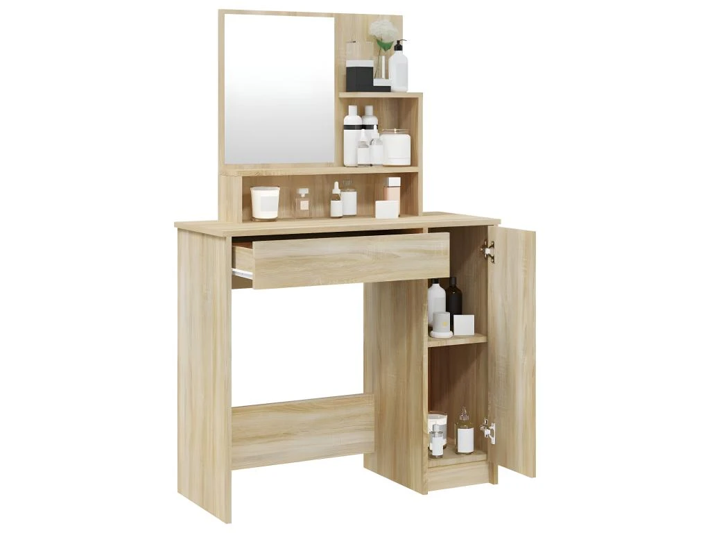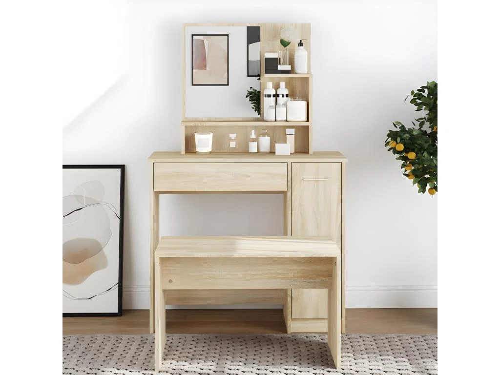 - Grand espace de rangement : le tiroir, les compartiments et les étagÚres ouvertes de la coiffeuse offrent des emplacements pour les articles de maquillage et gardent tout à sa place.