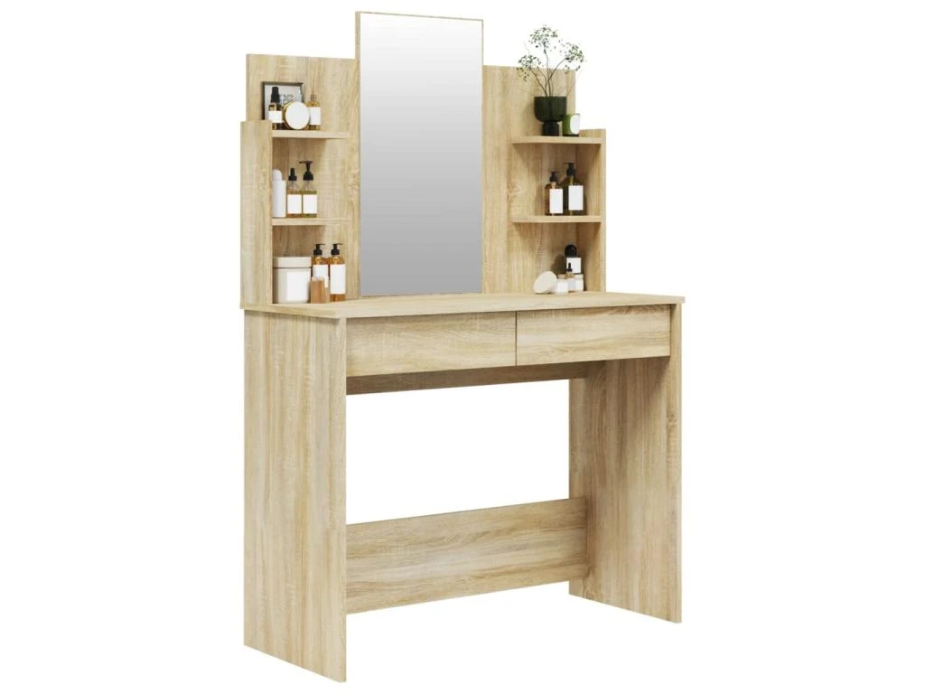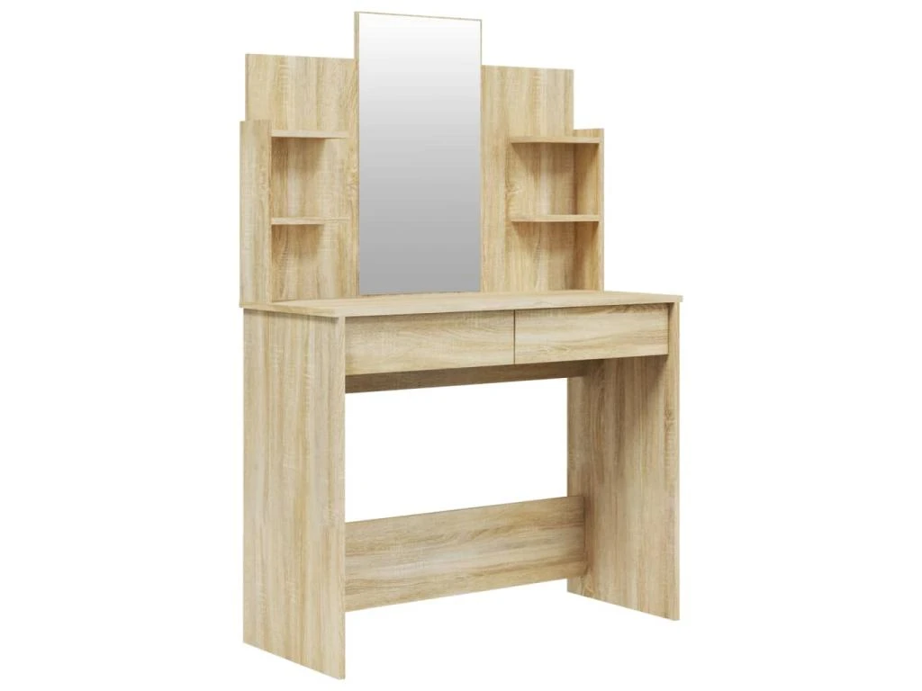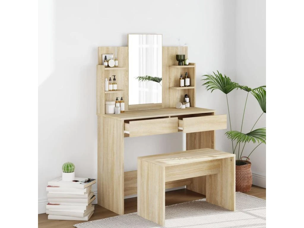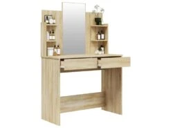 - Grand espace de rangement : les tiroirs et les étagÚres ouvertes de la coiffeuse offrent des emplacements pour les articles de maquillage et gardent tout à sa place.