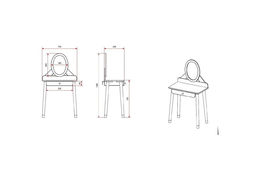 Coiffeuse livrée, à monter, avec notice incluse.