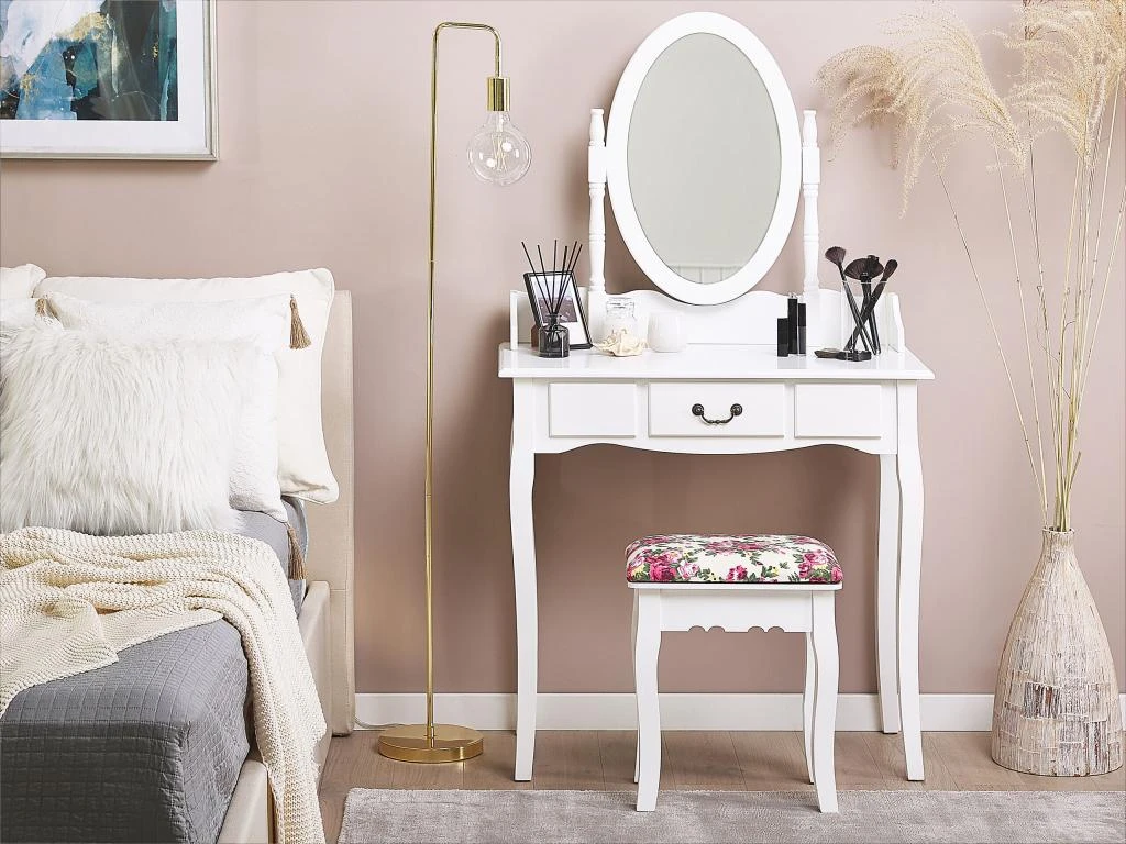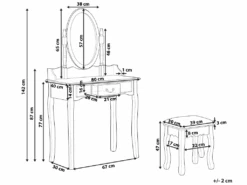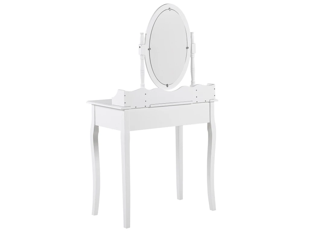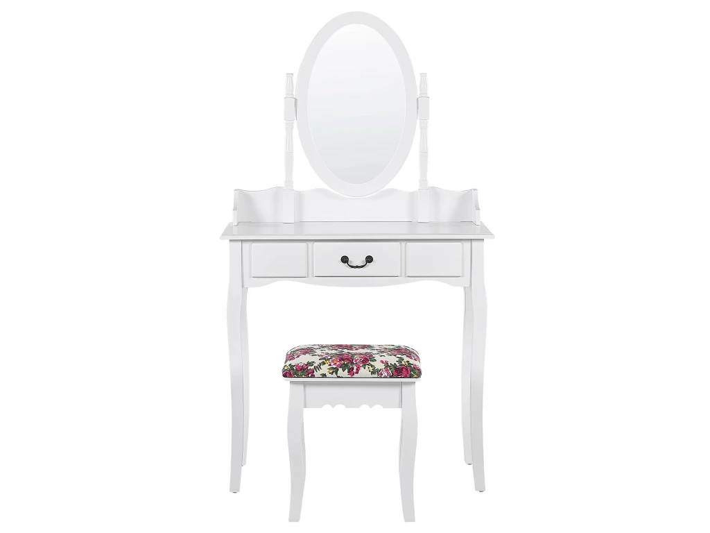 Caractéristiques clés: Grand miroir rotatif, un tabouret confortable inclus , Assise stable et confortable, Structure du cadre robuste, Espace de rangement pratique pour toutes vos affaires